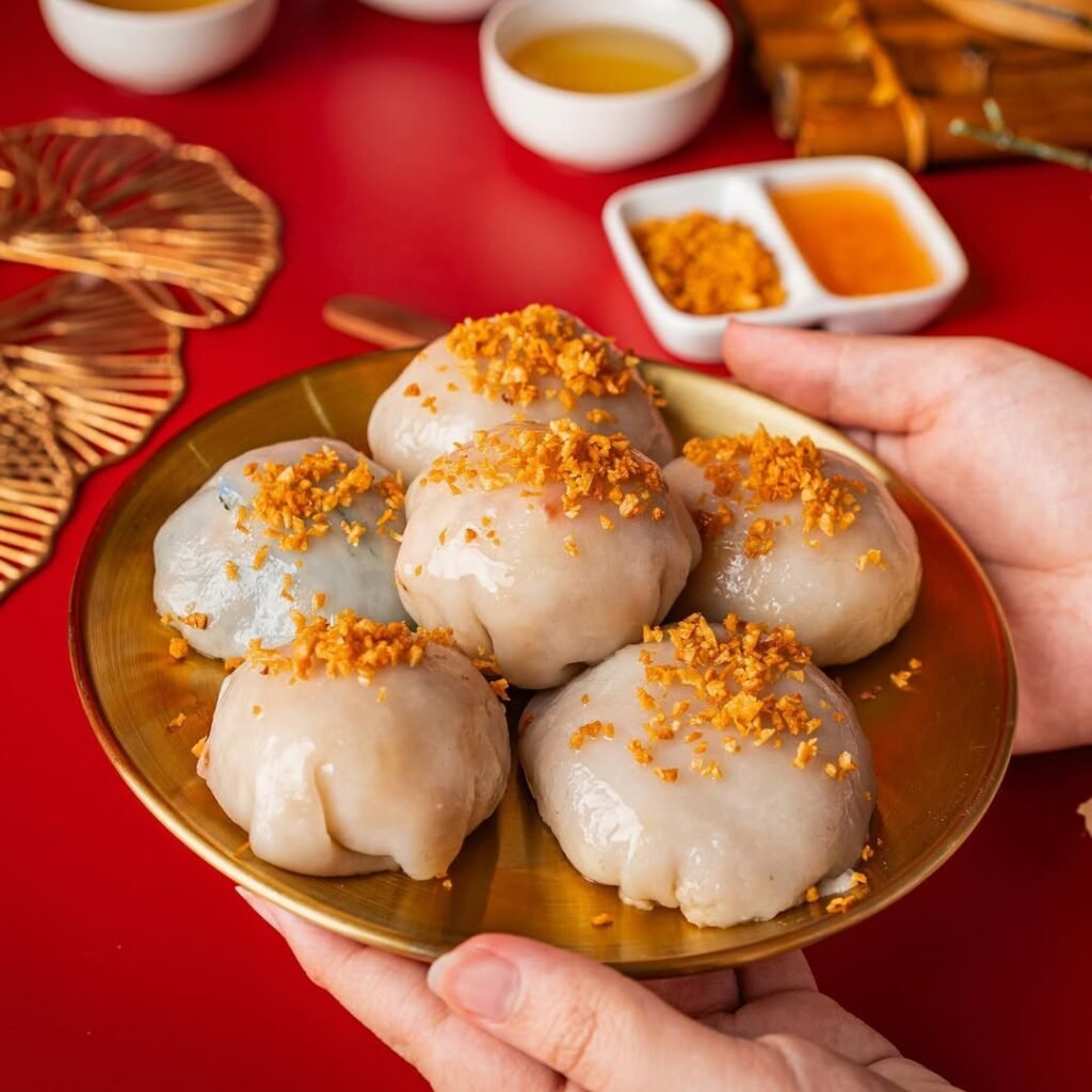 - Chai Kue/Choipan — Kue kukus isi bengkoang/kucai + bawang renyah