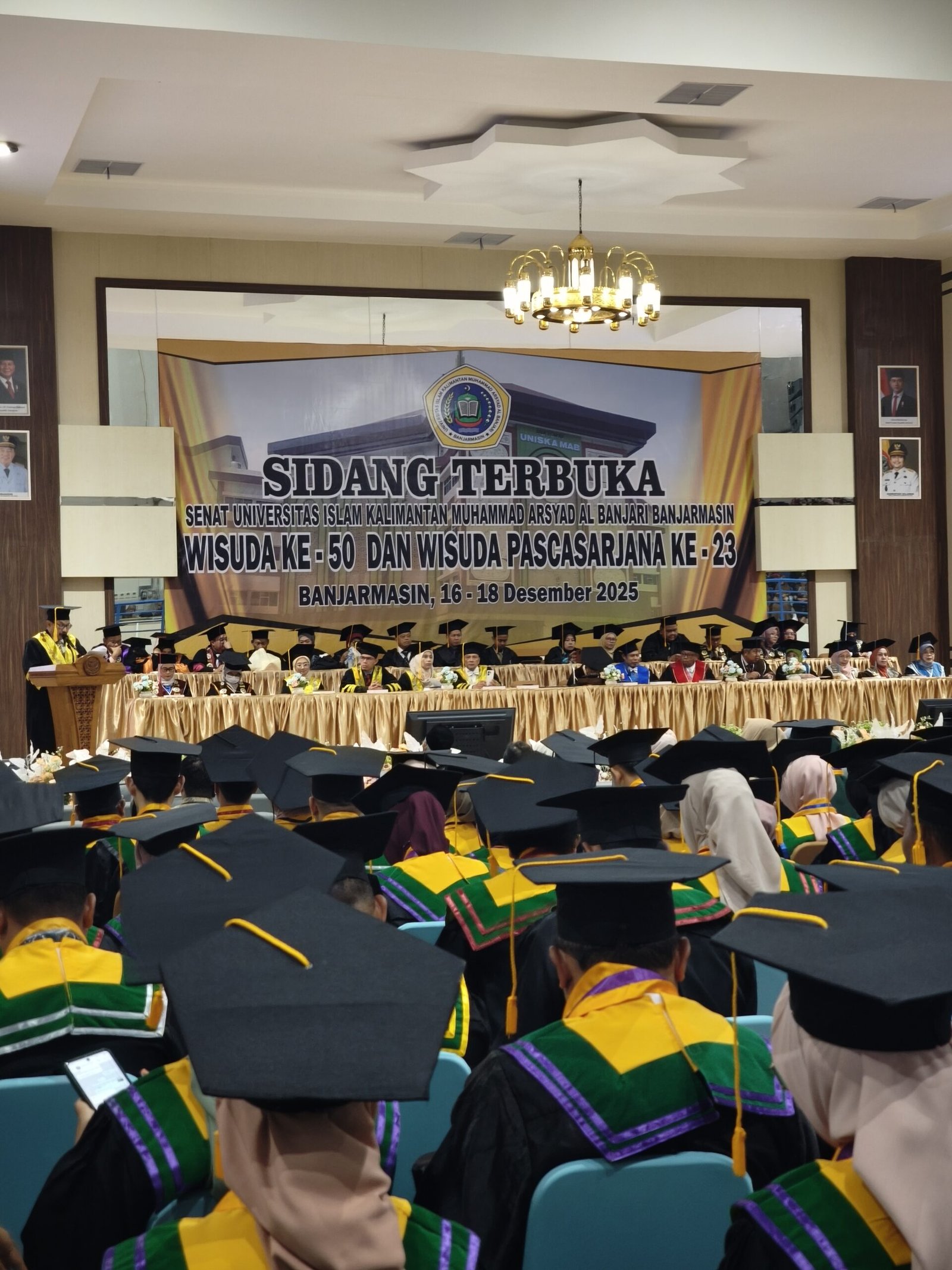 Universitas Islam Kalimantan (UNISKA) Muhammad Arsyad Al Banjari (MAB) Banjarmasin kembali menorehkan tonggak penting dalam perjalanan akademiknya dengan menyelenggarakan Wisuda Sarjana ke-50 dan Pascasarjana ke-23 melalui Sidang Terbuka Senat Universitas, yang berlangsung selama tiga hari, 16 hingga 18 Desember 2025, bertempat di Gedung Serba Guna Kampus UNISKA MAB Handil Bakti, Kabupaten Barito Kuala.